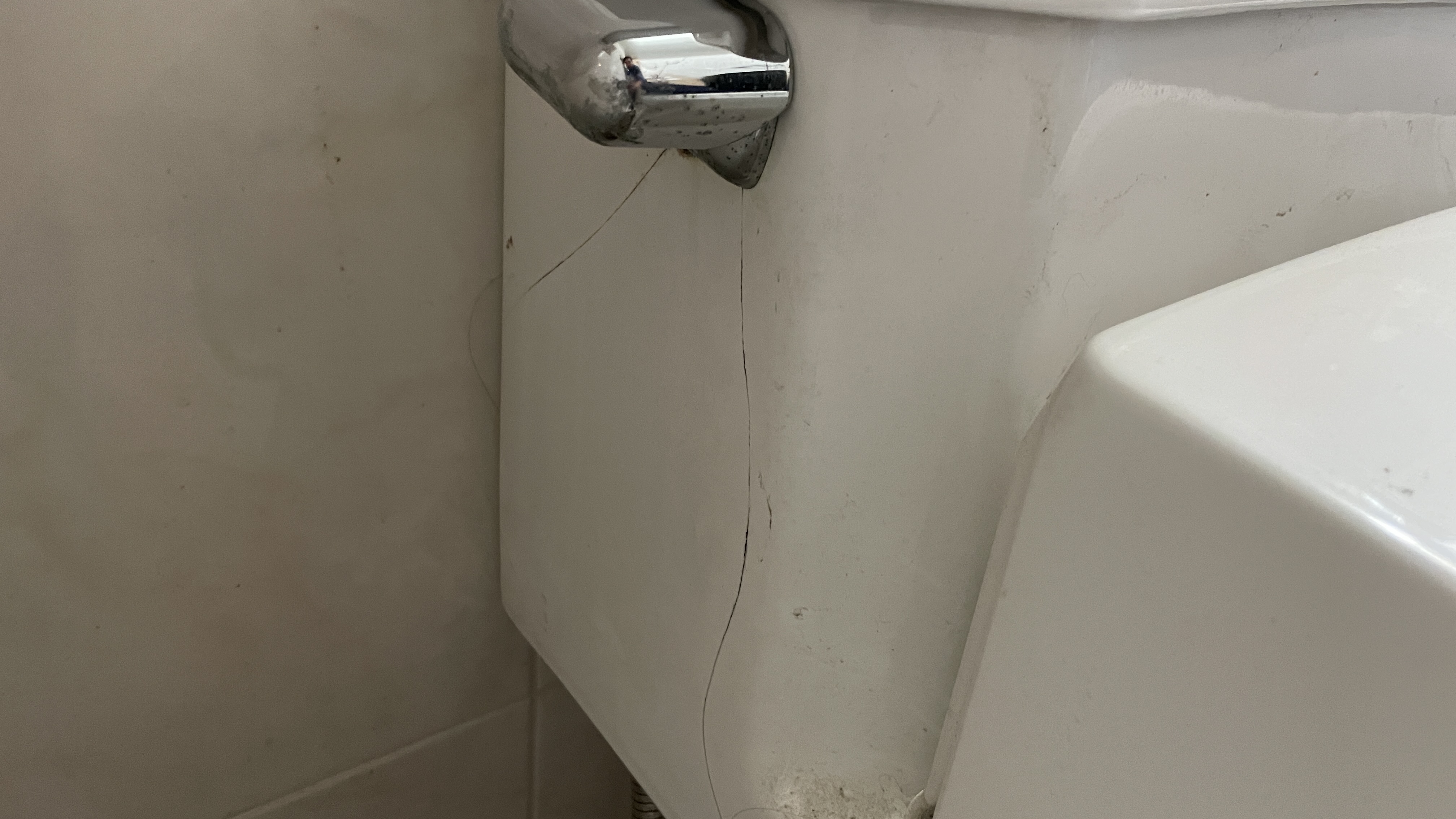 균열이 생긴 변기는 청소가 어러워 위생적인 문제를 일으킬 수 있습니다. 깨진 부분에 세균이 쌓일 수 있어 주기적인 교체가 필요합니다.