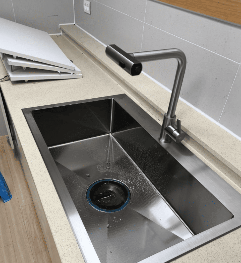 고객님 후기: "기존의 원형 싱크볼은 너무 작고 사용하기 불편했는데, 사각싱크볼으로 교체하고 나니 주방이 훨씬 넓어지고 효율적으로 변했어요. 물빠짐도 좋고, 세척할 때도 더 넓게 공간을 사용할 수 있어서 매우 만족합니다. 디자인도 깔끔하고 세련돼서 주방 분위기도 한층 업그레이드 되었어요!"